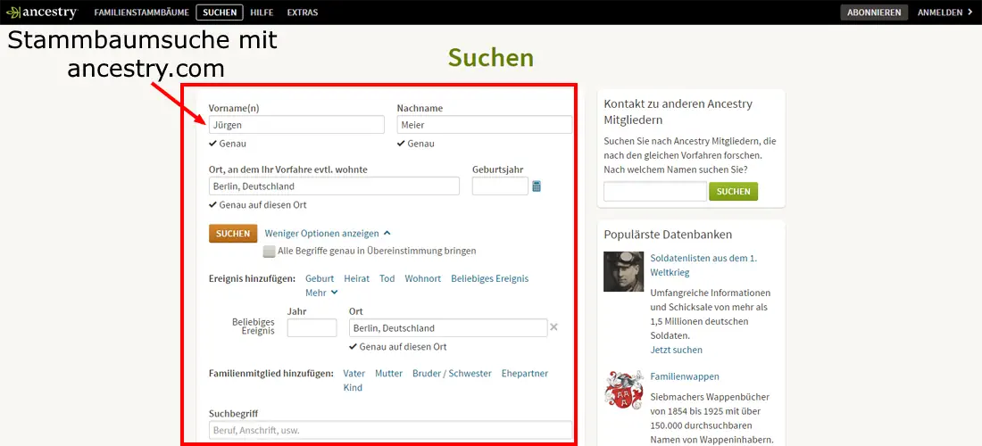 Ob Sie all diese Informationen tatsächlich benötigen, hängt von der Ausgangslage ab. Je genauer Sie Ihre Suche vorbereiten, desto höher ist jedoch die Erfolgswahrscheinlichkeit – insbesondere bei gängigen Nachnamen oder wenigen verfügbaren Ausgangsdaten.